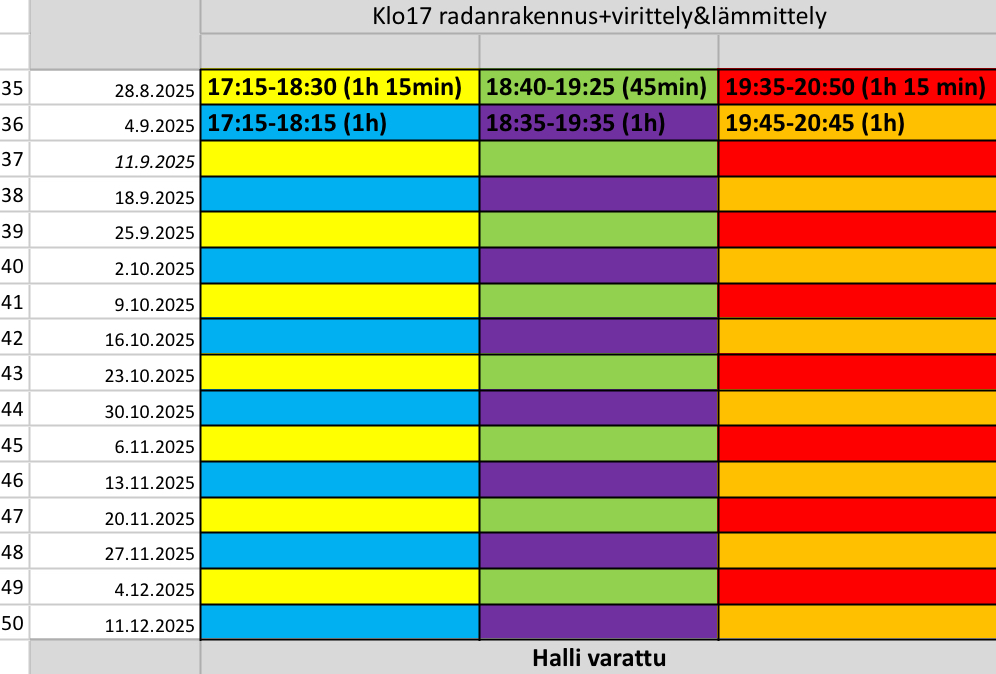 🔵17:15 – 18:15 Sinisen ryhmän kouluttajat Lotta&Susanna